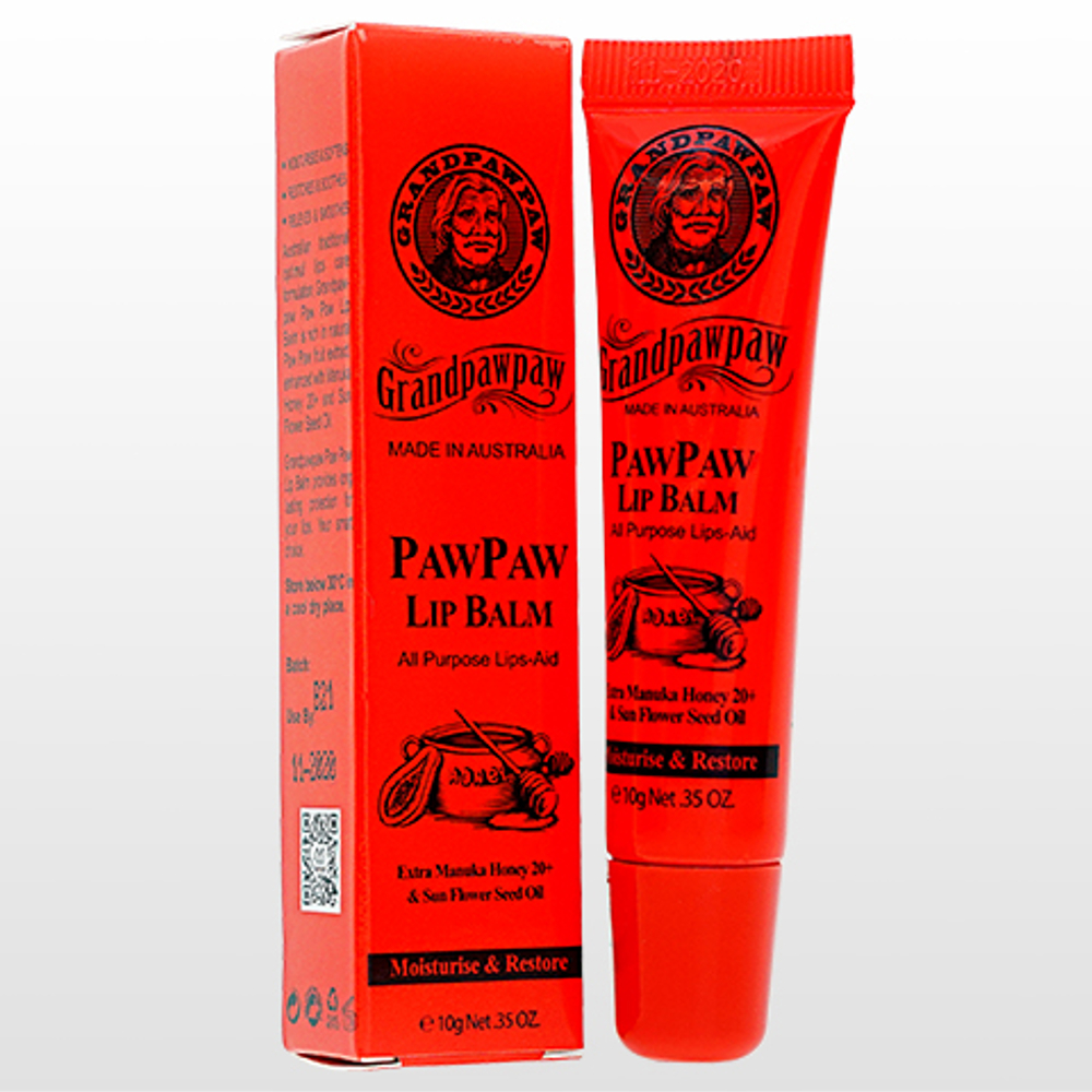 Pharmaceutical grade petrolatum, Sun flower seed oil, Beeswax, Carica papaya (Paw Paw) fruit extract, Manuka honey 20+, Lanolin, Hydrogenated castor vegetable oil, Pottasium sorbate, Natural paw paw fruit flavour